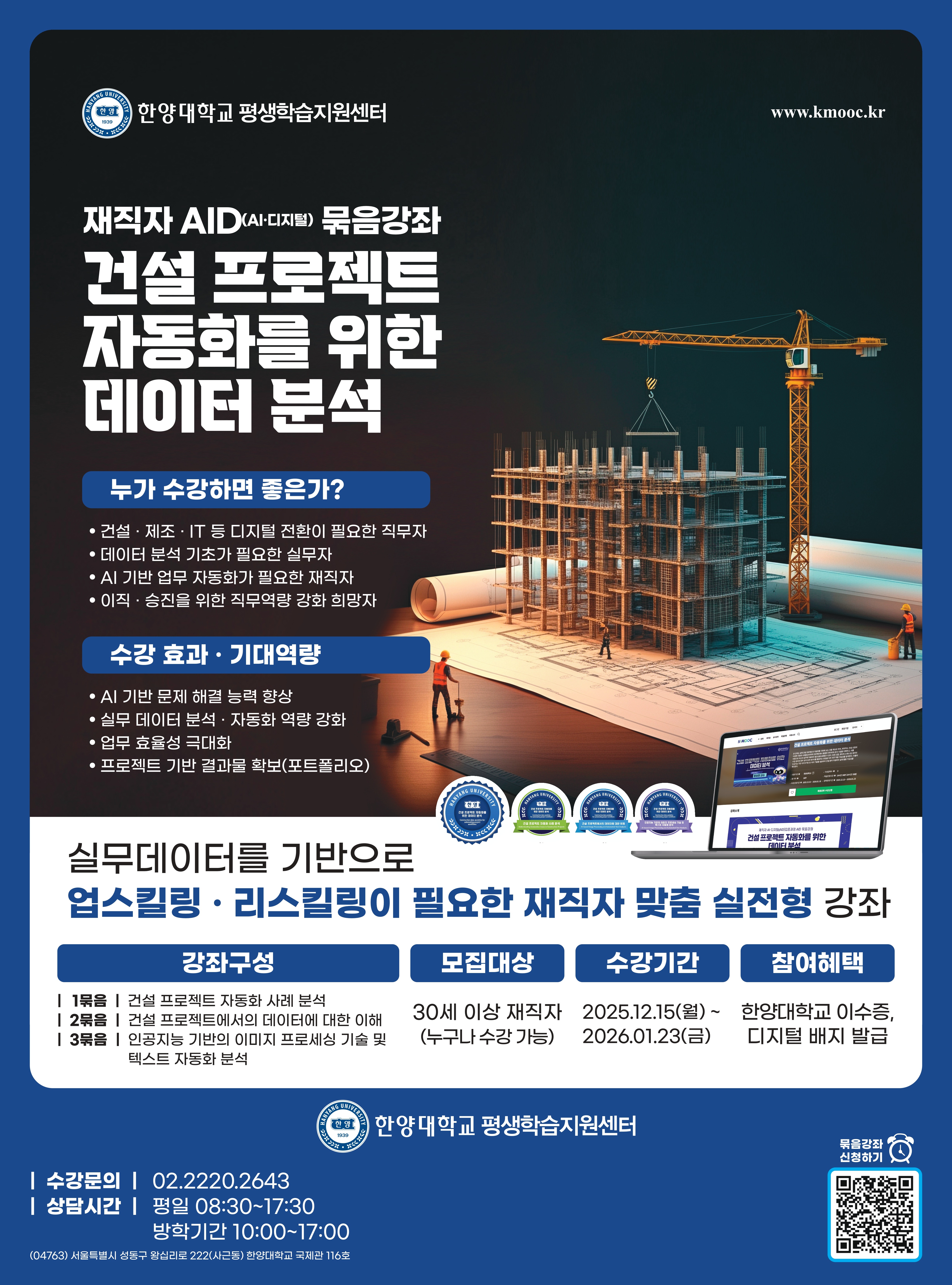 [한양대학교] 2025년 재직자AI·디지털(AID)집중과정 AID묶음강좌 수강안내